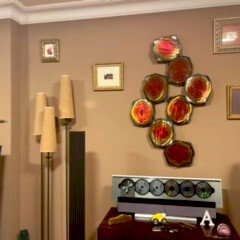 Poput lopoča u jezercu, krugovi su poredani u ekstravagantnoj zidnoj skulpturi 'Lily Pads'. Promjena iz žute u crvenu ukrašava apstraktne oblike koji kombiniraju i okrugle i kutne elemente. Ova posebna boja naglašava plastičnost luksuzne metalne slike koja je impresivan dodatak u vašoj dnevnoj sobi ili spavaćoj sobi i povlači vas i vaše goste pod svoju čaroliju.