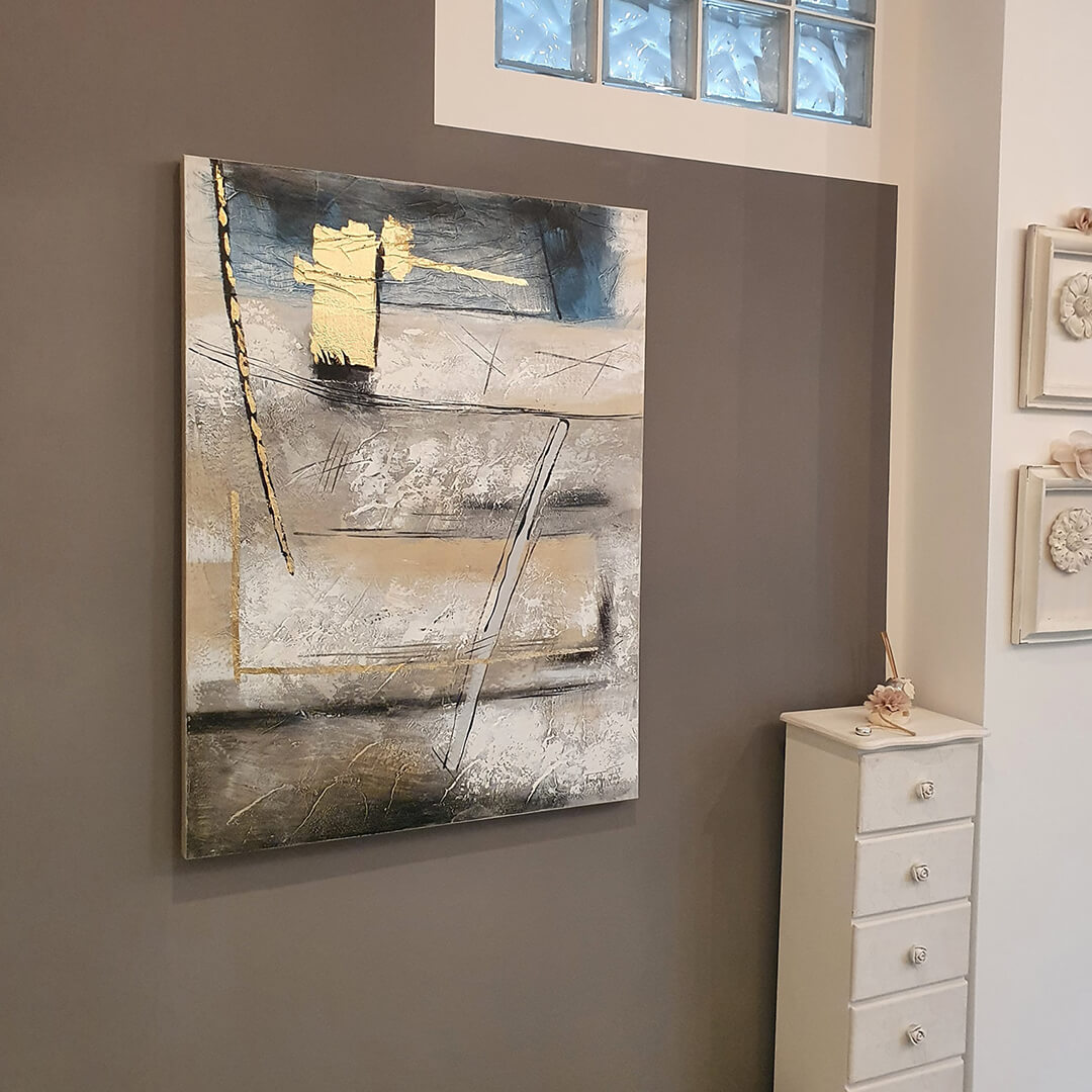 Motiv: Acryl Gemälde | Grau; Goldglanz | 75x100cm